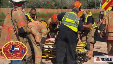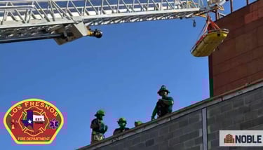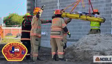 Los Fresnos firefighters participated in a high-angle rescue drill with Noble Construction!