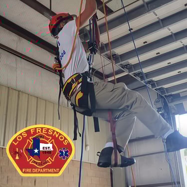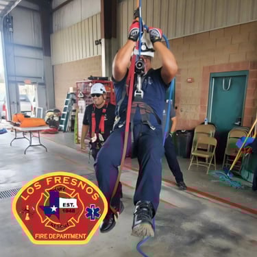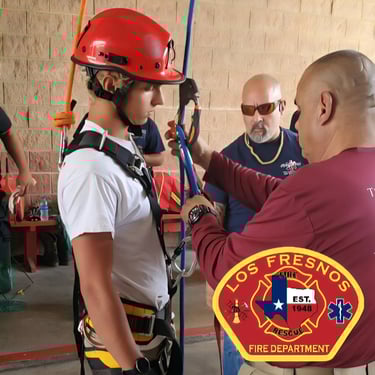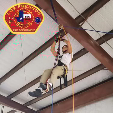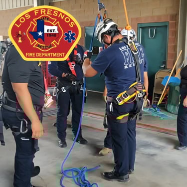 Members of the Los Fresnos Fire Department participate in out of town rope rescue training!
