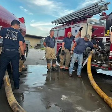 Los Fresnos firefighters train to establish water supply from tankers to engines since this is a time-sensitive operation that requires perfect execution.